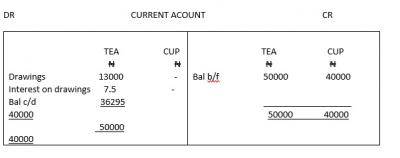 Tea and Cup are into a partnership business. Interests on drawings made by partners are at 10% per annum. Tea’s capital is ₦70000 and current balance is ₦50000. He withdrew the following amounts during the year : 3000 on 31st January , 2000 on 31st March, 4000 on 1st July, 1500 on the 30th September, 2500 on 1st November. Cup’s capital is ₦100000 and current balance is ₦40000. He made no drawings during the period. what is the closing balance in Tea’s current account
