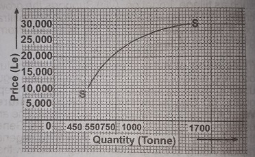 (b)(i) Definition of the term supply: Supply is the total quantity of commodities which producers are willing to offer for sale at alternative prices, over a given period of time.