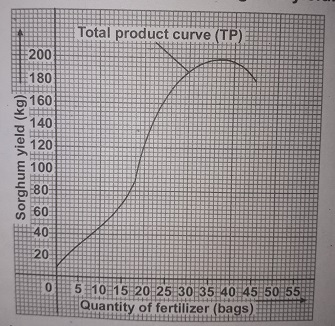 (ii) Explanation of the relationships between fertilizer input and sorghum yield: As successive amounts of fertilizer are applied, sorghum yield increases proportionately until it got to a point at which the use of more amount of fertilizer added leads to less yield of sorghum than the preceding amount.
