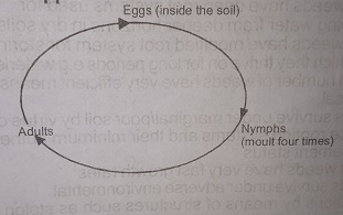(c) With the aid of a diagram, describe the life cycle of the variegated grasshopper. [6marks]