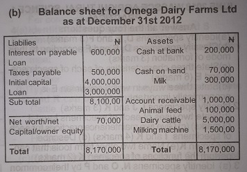 (b) The financial data of Omega Dairy Farms Ltd as at December 31st 2012 are shown below: