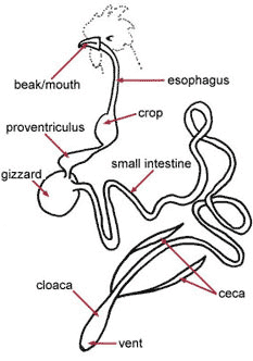 (b) Drawing and labelling of the digestive tract of a hen