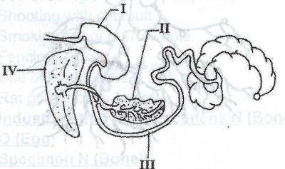 In the diagram above which shows the digestive tract for a certain farm animal, which of the following enzymes is not secreted by the part labelled III?