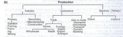 (b) Illustrate with a labeled diagram the main divisions and subdivisions of production.
