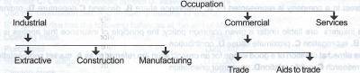 i. Industrial occupation: This is concerned with all the activities aimed at actual production either by extraction or changing the shape of extracted goods through manufacturing and construction. Examples : Engineering, Mining, Manufacturing. etc.