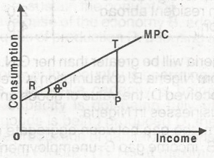 In the diagram, the marginal propensity to consume (MPC) is equal to