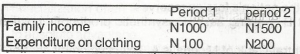In the table, the income elasticity of clothing is