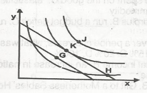 In the diagram above, the consumer attains equilibrium at point