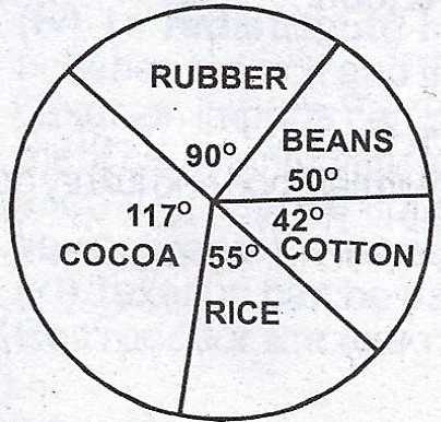 The pie chart here represents the hypothetical output of farmers in a country in a particular year. The total output of the crops was 72,000 tonnes.