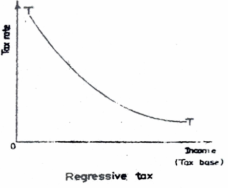 In the diagram above, the curve is negatively sloped indicating that higher income earners are levied at lower tax rate and vice versa. A regressive system of taxation is one in which the higher income earners pay a lower rate of tax while the lower income earners pay a higher rate of tax.