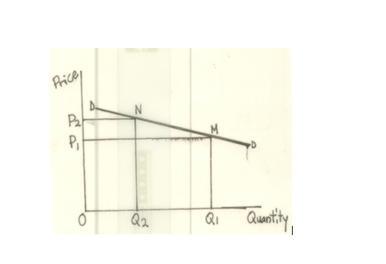 TR before the price increase is area of rectangle 0P1MQ1. TR after the price increase is the area of rectangle 0P2NQ2. Clearly, 0Q1MP1 > 0Q2NP2 .i.e. TR1 > TR2