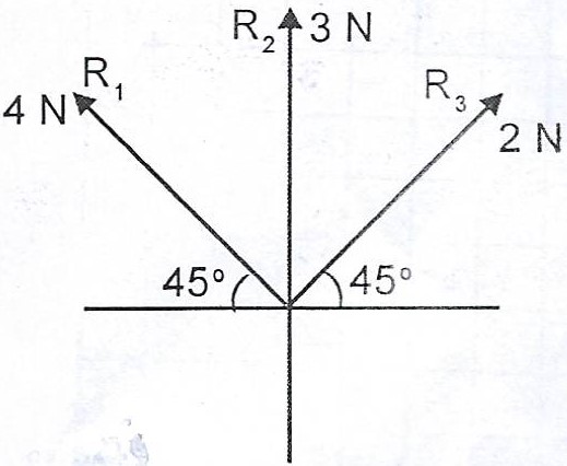 Forces of magnitude 3N, 4N and 2N act along the vectors \(j ; -i + j\) and \(i + j\) respectively. Calculate, correct to one decimal place, the magnitude of the resultant of the forces.