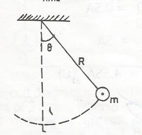 A simple pendulum of mass m moves along an arc pf a circle radius R in a vertical plane as shown above. What is the work done by gravity in a downward swing through the angle q to 0 degree