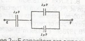 Three 2-µF capacitors are arranged as seen in the circuit above . The effective capacitance between E and F is