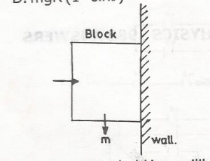 A block of mass m is held in equilibrium against a vertical wall by a horizontal force. If the coefficient of friction between the wall and the block is µ, the minimum value of the horizontal force is