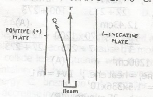A beam of radiation is passed between a pair of charged plates as indicated in the fig above. Beam P is undetected While Q is deflected to the left. P and Q respectively should be