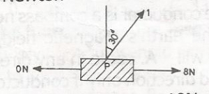 Two horizontal forces, 10N and 8N and another force F1 inclined at 30 to the vertical acting as shown in the diagram above, keep the body P in equilibrium, The weight of the body is
