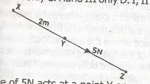 A force of 5N act at a point Y on a rod XYZ as shown in the diagram above, if XY is 2m. What is the moment of the force about point X?