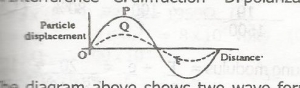 The diagram above shows two wave forms P and Q at a particular instant in time. the two waves will interface