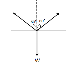 A handbag containing some load weighing 162N is carried by two students each holding the handle of the bag next to him. If each handle is pulled \( 60^{\circ} \) to the vertical, find the force on each student’s arm