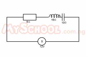 An a.c circuit of e.m.f 12V has a resistor of resistance 8Ω connected in series to an inductor of inductive reactance 16Ω and a capacitor capacitive reactance 10Ω. The current flow in the circuit is