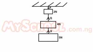 Am elastic material has a length of 36cm when a load of 40N is hung on it and a length of 45cm when a load of 60N is hung on it. The original length of the string is