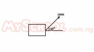 In the figure above, the work done by the force of 100N inclined at an angle of 60o to the object dragged horizontally to a distance of 8m is
