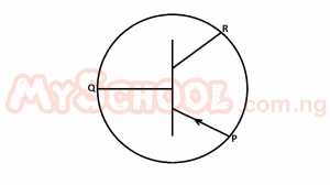 In the circuit diagram of a transistor above, the terminal P, Q and R represent