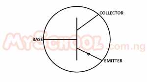 In the circuit diagram of a transistor above, the terminal P, Q and R represent