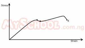 The diagram above represents the stress-strain graph for a typical metal rod. What does the X represent?