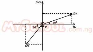 The figure above shows 4 forces 3N, 10N, 3โ3N and 6N acting on a particle P. The resultant of he four forces is