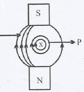 In the diagram above, the direction of the force between N and S in the magnetic field is