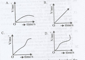 In the diagram above, which of the following velocity-time graphs shows uniform acceleration of a body from rest?