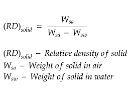 A solid weighs 45N and 15N respectively in air and water. Determine the relative density of the solid