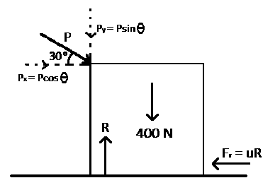 W = 400 N; P = 100 N; θ = 30o; μ = ?