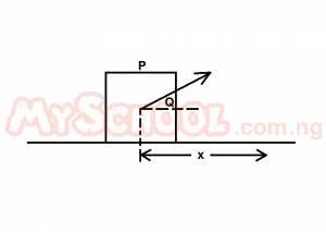 The body P shown in the diagram above is in equilibrium. If the mass Q of the body is 10kg, calculate the tension T in the string. (Take g = 10ms2)