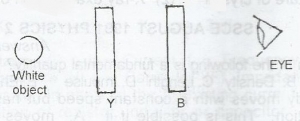 In the arrangement illustrated above, Y and B are yellow and blue transparent light filters respectively through the filters is