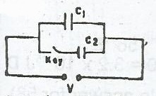 Two capacitors C1 and C2 are connected as shown in the diagram. The capacitance C2 is twice C1 when the key is opened the energy stored up in C1 is W. If the key is later closed and the system is allowed to attain electrical equilibrium, the total energy stored in the system will be