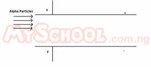 A stream of alpha particles is projected into an electric field between two plates X and Y as shown in the diagram above. Which of the following is correct? The particles are