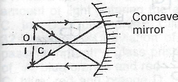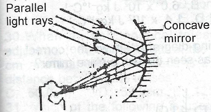 (b) Explain with the aid of diagrams, how a concave mirror could be used to: (i) Ignite a piece of carbon paper; (ii) produce an exact copy of a picture on a screen.