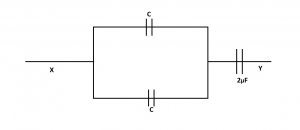 The effective capacitance between points X and Y in the diagram below is 1.0μF, What is the value of the capacitance C, measured in micro-farad?