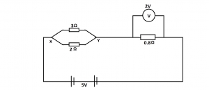 What is the potential difference between X and Y in the diagram above if the battery is of negligible internal resistance