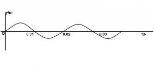 The diagram above illustrates a variation of the displacement y of a wave particle with time t. lf the velocity of wave is 250ms-1, calculate the distance between two successive particles which are in phase
