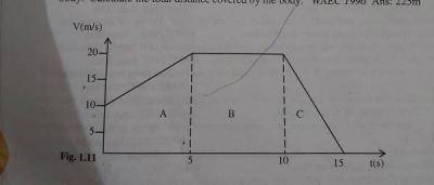 The diagram above illustrates the velocity-time graph of the motion of a body. Calculate the total distance covered by the body
