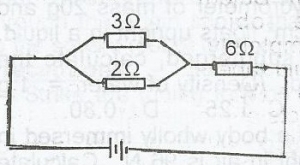 In the diagram above, the current passing through the 6\(\Omega\) resistor is 1.5A. Calculate the current in the 3\(\Omega\) resistor