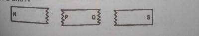 If a bar magnet is accidentally broken into three pieces as shown in the diagram above, the polarities of P and Q respectively are