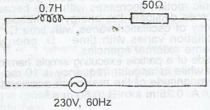 Calculate the reactance of the inductor in the circuit diagram shown above [\(\pi = \frac{22}{7}\)]