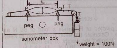 The diagram above shows the wire of a sonometer box set into resonance by a vibrating tuning fork of frequency f, when the wire is stretched by a tension T, the resonating length of the wire is I while the wavelength of the sound produced is \(\lambda\). Which of the following statements about the frequency of vibration of the wire is not correct?