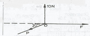 The diagram above illustrates three forces acting on an object at point O. If the object is in equilibrium, determine the magnitude of the force P.