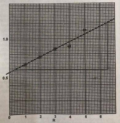 - Plot a graph of V\(_{1}^{-1}\) on the vertical axis against R on the horizontal axis starting both axes from the origin (0,0).